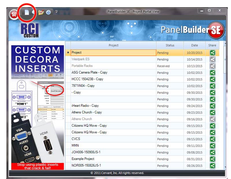 Starting a New Project Starting a new project is easy! Simply click on the folder icon in the top left corner of the project portal page. (Hint: Your project portal is the first window that opens when your start PBSE) Projects allow you to store as many plates and panels as you need under one project name. This will also allow you to submit one order with all of the panels you have designed. Have a suggestion for upgrades? We want to hear it! |