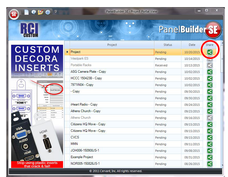 Users have the ability to share projects from the "Project Portal" with any PBSE user. This allows multiple people to work on one shared project from any computer. Users have the ability to give access in two ways: