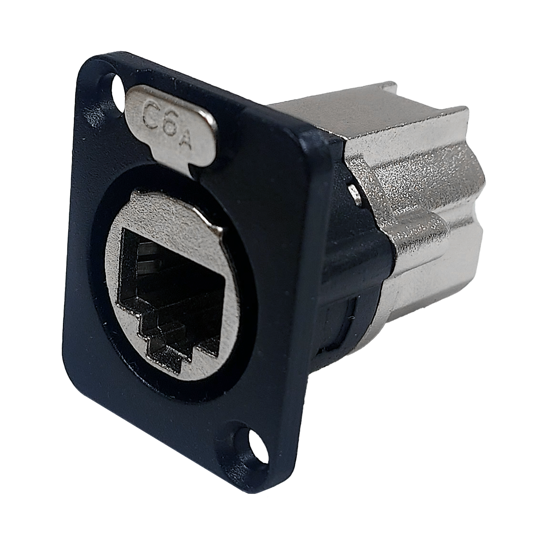 Enova CAT6A shielded feedthrough D-size black shell (Compatible with Neutrik NE8MX6 series mating connectors) No Logo. Value Line!
