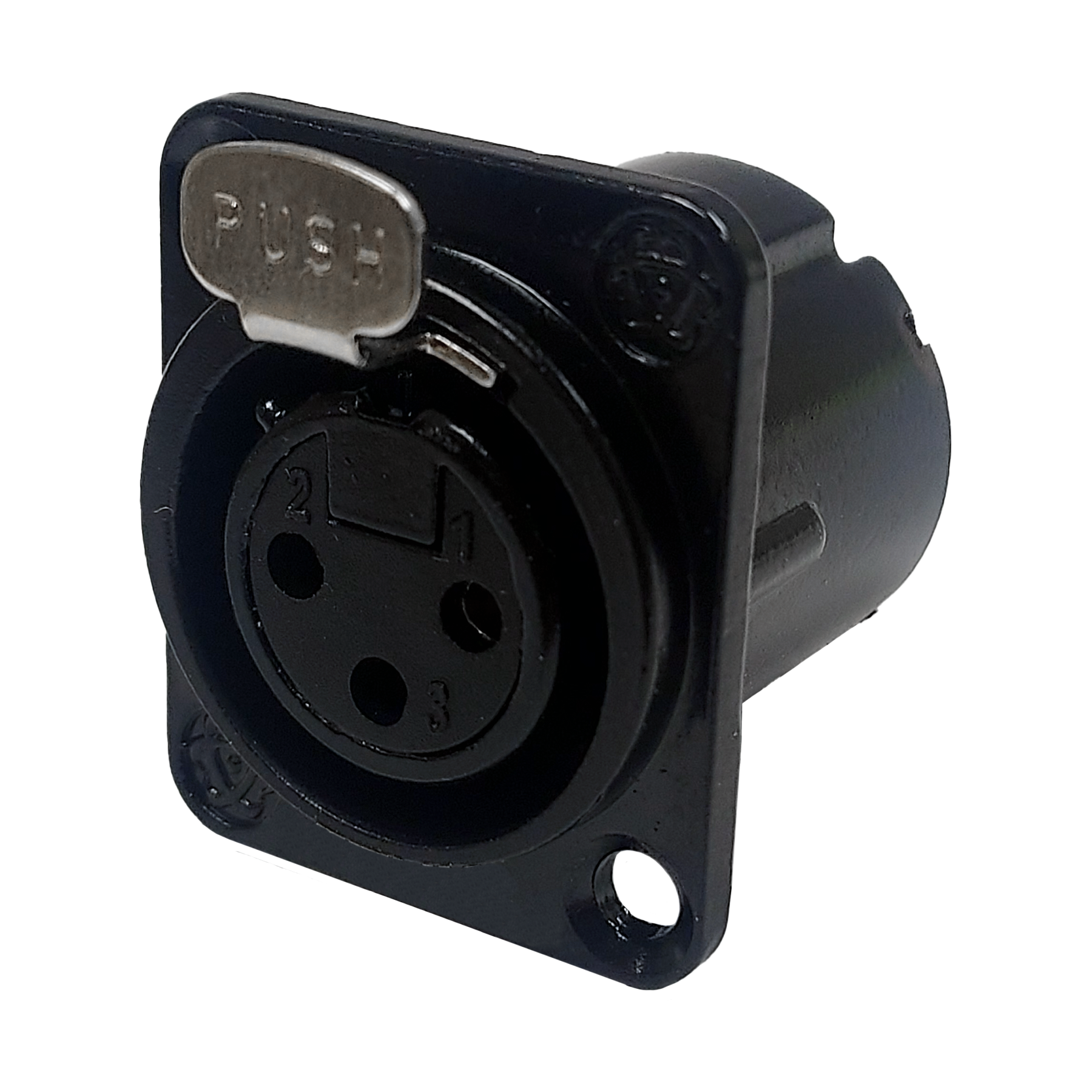 Enova XLR Female 3-Pin D-size Chassis Mount solder contacts, black shell, gold contacts. No Logo. Value Line!